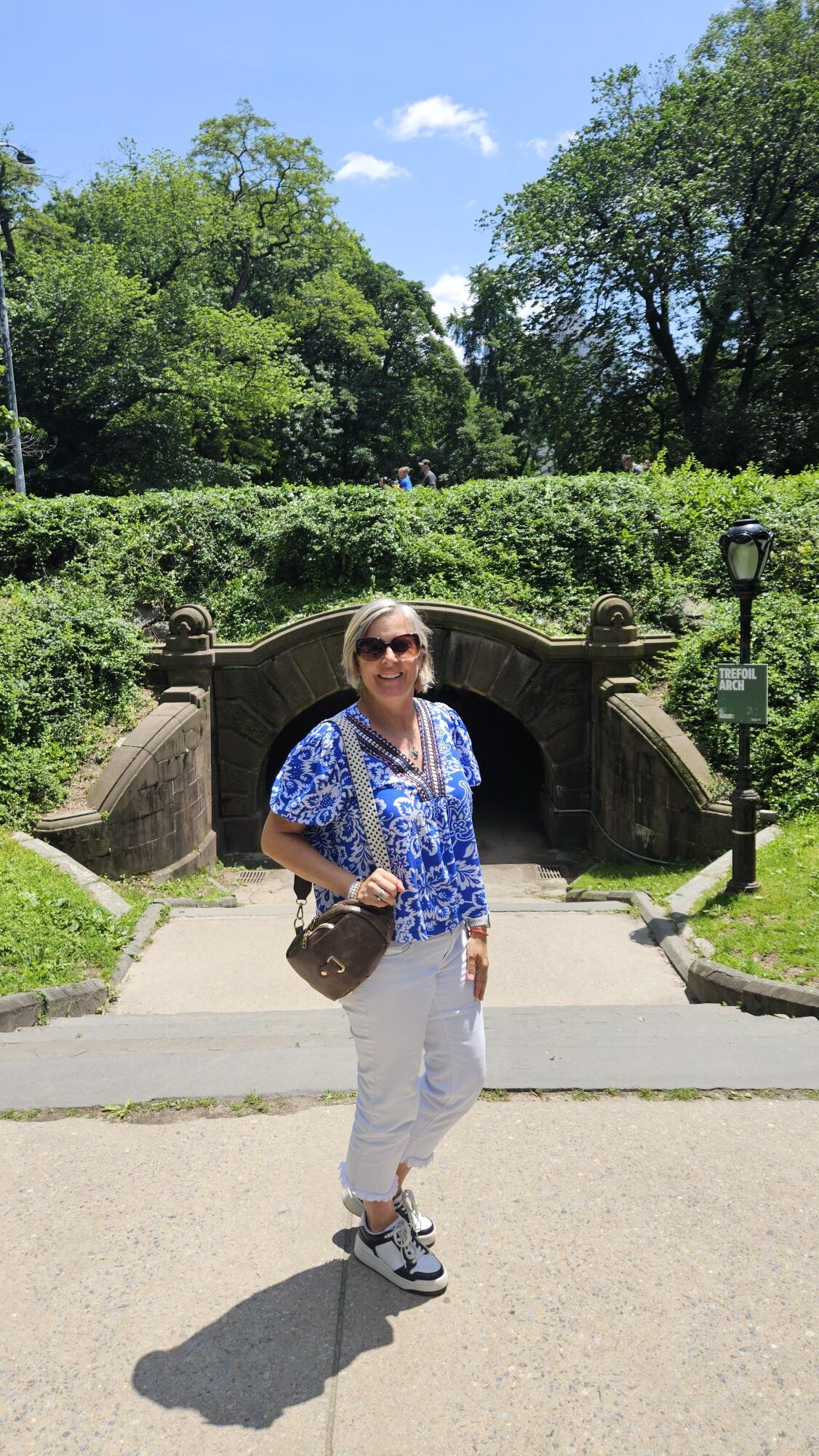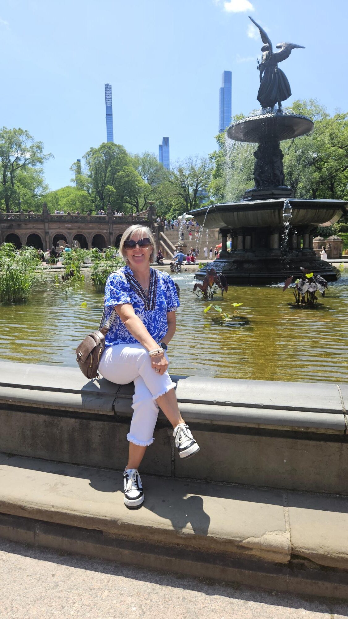 That is a darling outfit. Such a pretty blue. I ordered a similarly cut top from Shein and just received it. Need to pair it with white pants. You were very brave to wear your white pants on the subway and to Central Park.