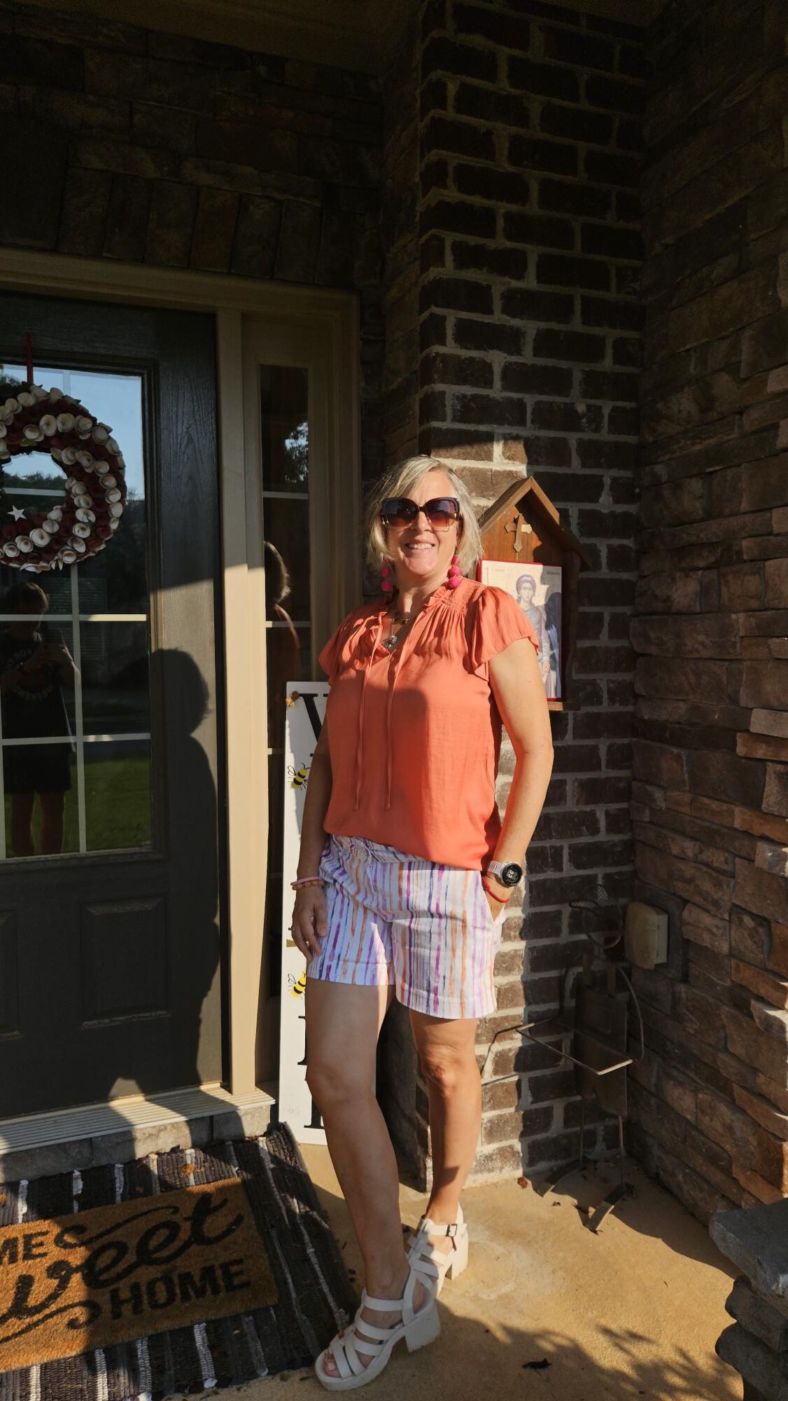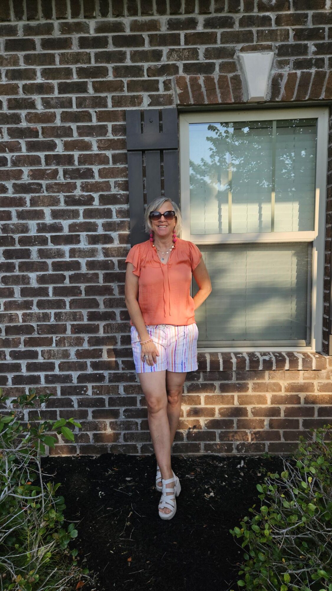 I’ve worn pink and orange for summer before (orange shorts, pink blouse), so this was not a new color combination for me. However, I wanted to put together a new outfit, so here it is.