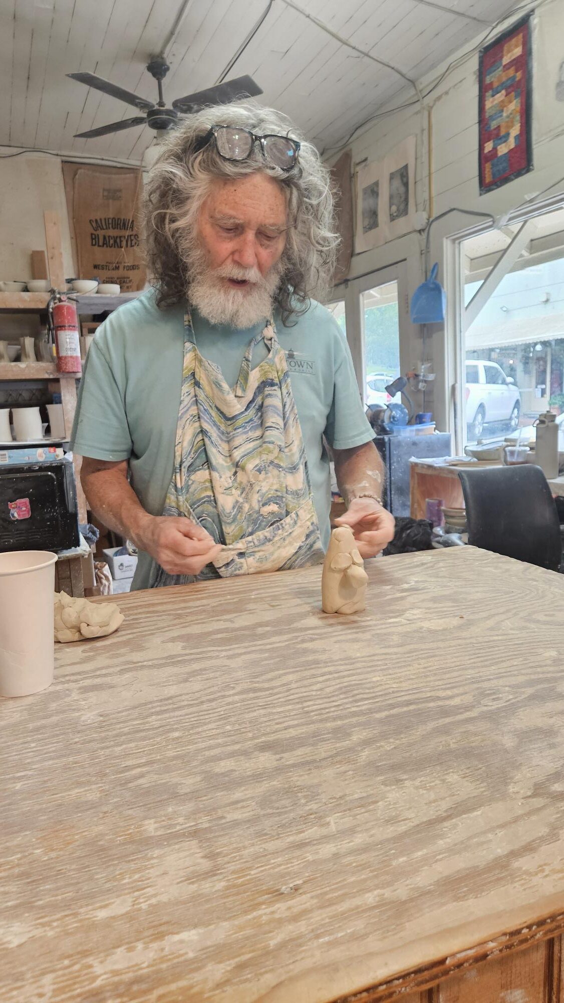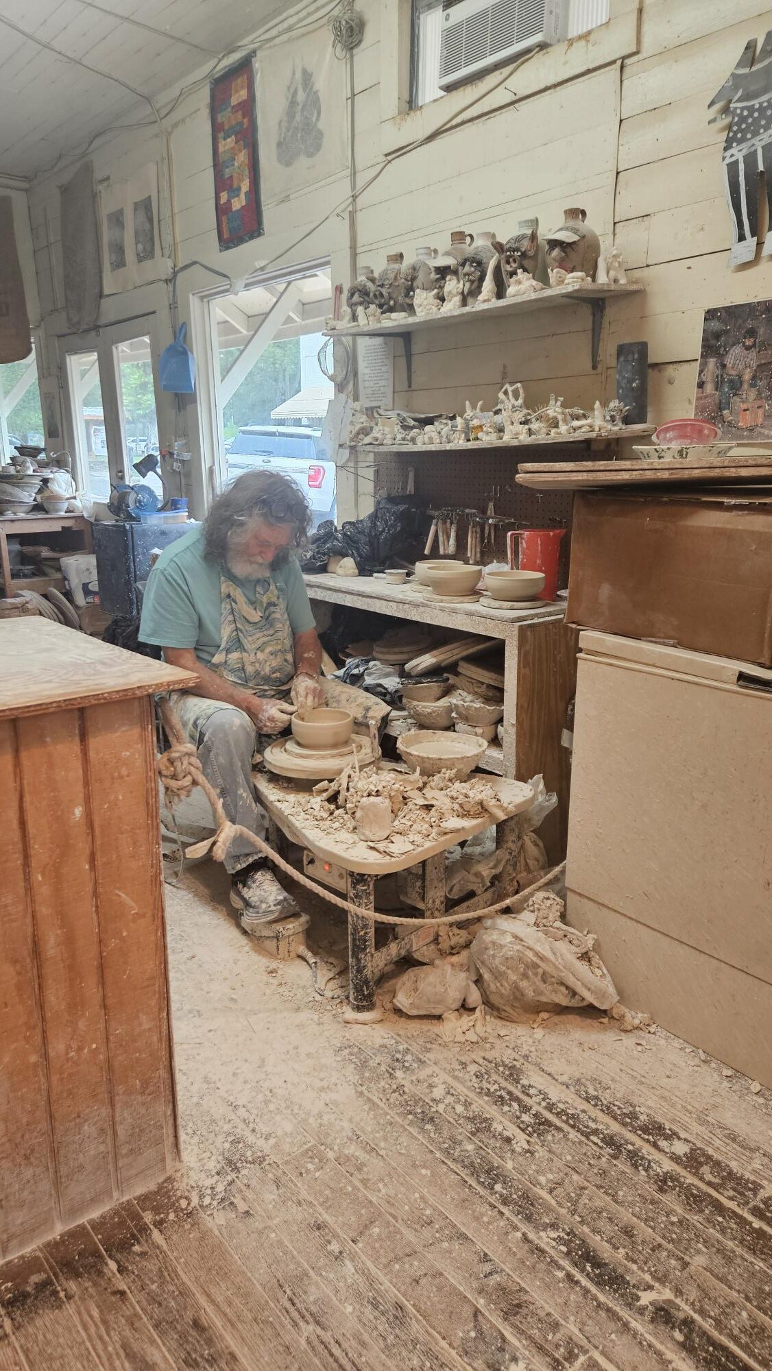 We observed him making bowls on the pottery wheel and he took time to show us how to create forest creatures when I mentioned that one of the boys had done a couple pottery camps the last couple years. We really enjoyed our stop in his shop.