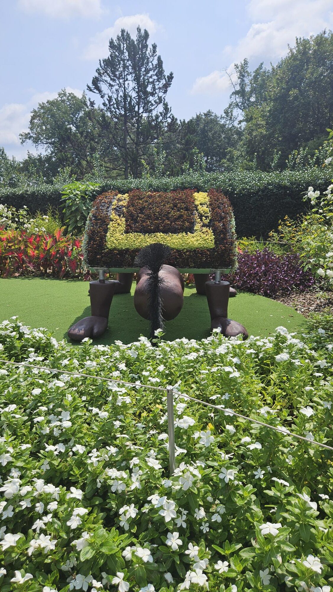 We were then greeted by the queen of hearts chess set army. These were really fun to look at and to notice all of the details that are involved in the creation of these living sculptures. As we visited, we noticed people trimming the different sculptures as they grow!