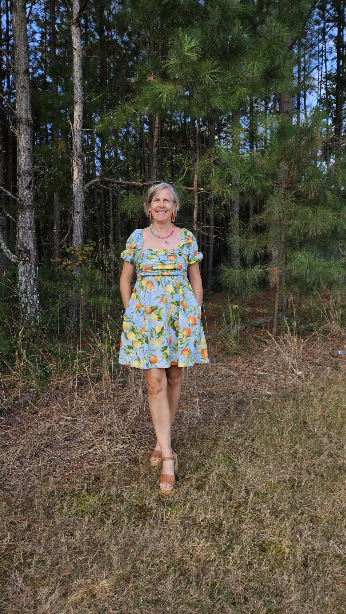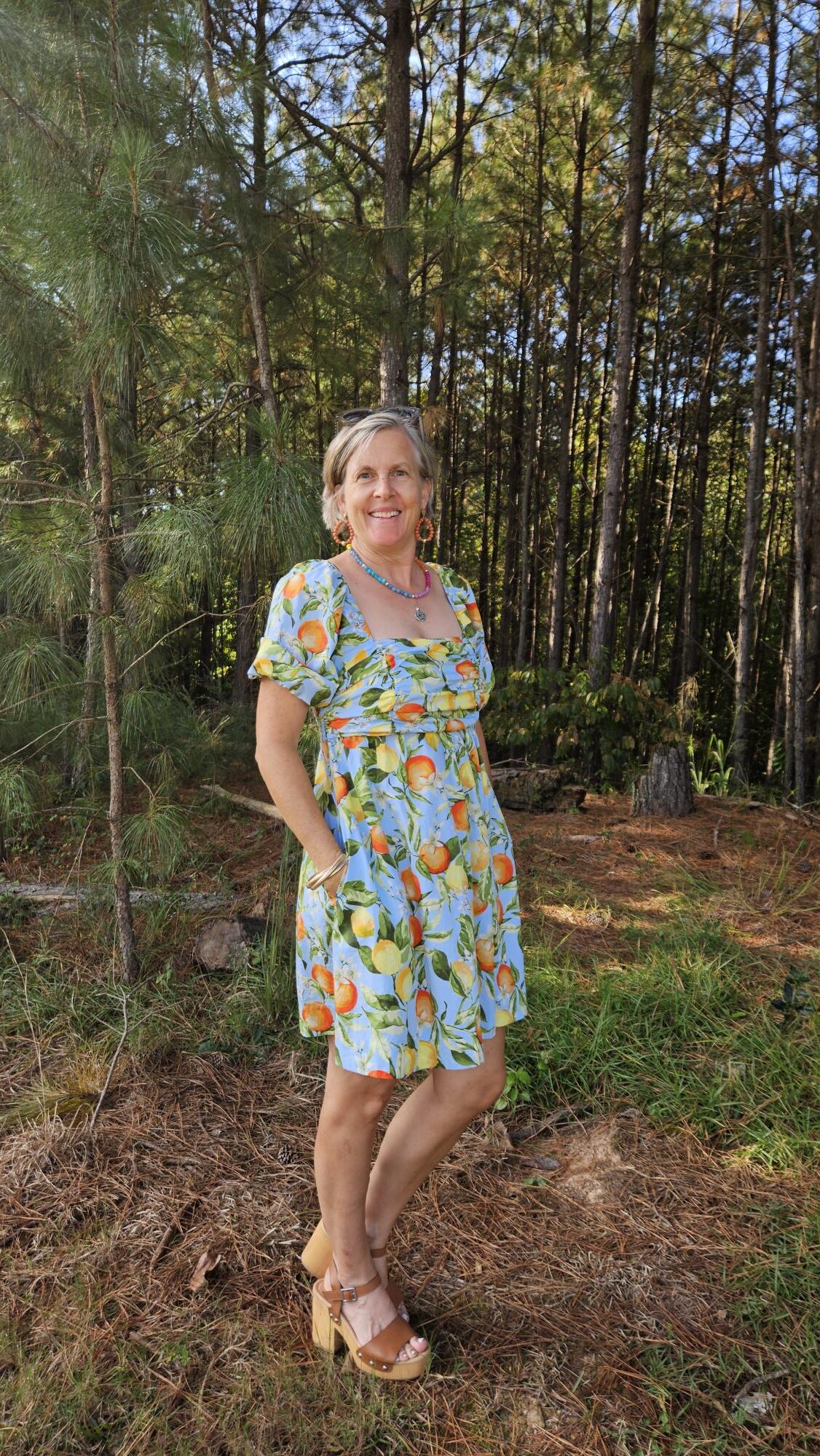 The addition of pockets is another fun detail as well as the cute sleeves. I was very comfortable throughout our brunch and did not feel the need to readjust anything. I chose accessories in the same color scheme as the print.