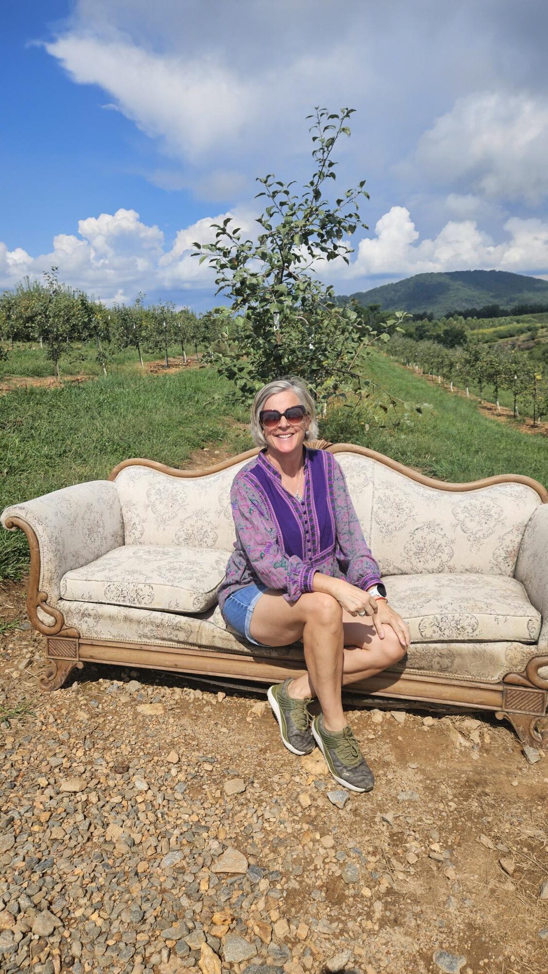 Looks like tasty fun! I love your purple top! Funny for the couch to be out in the middle of the yard. Made for great pics.