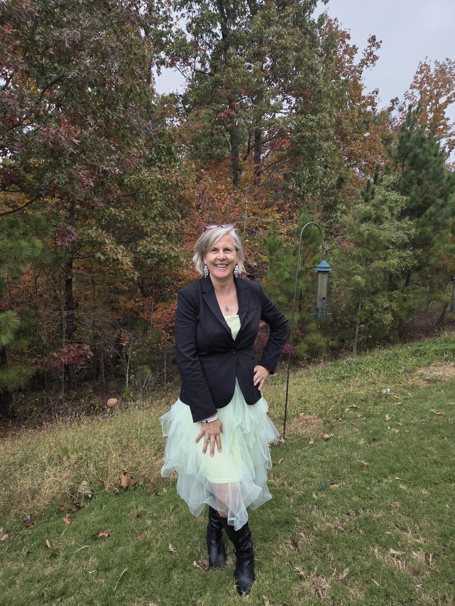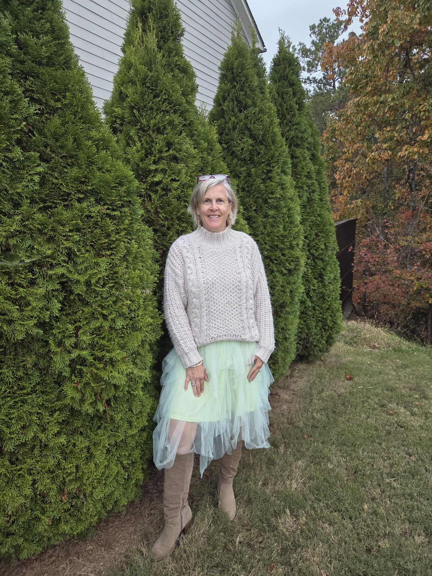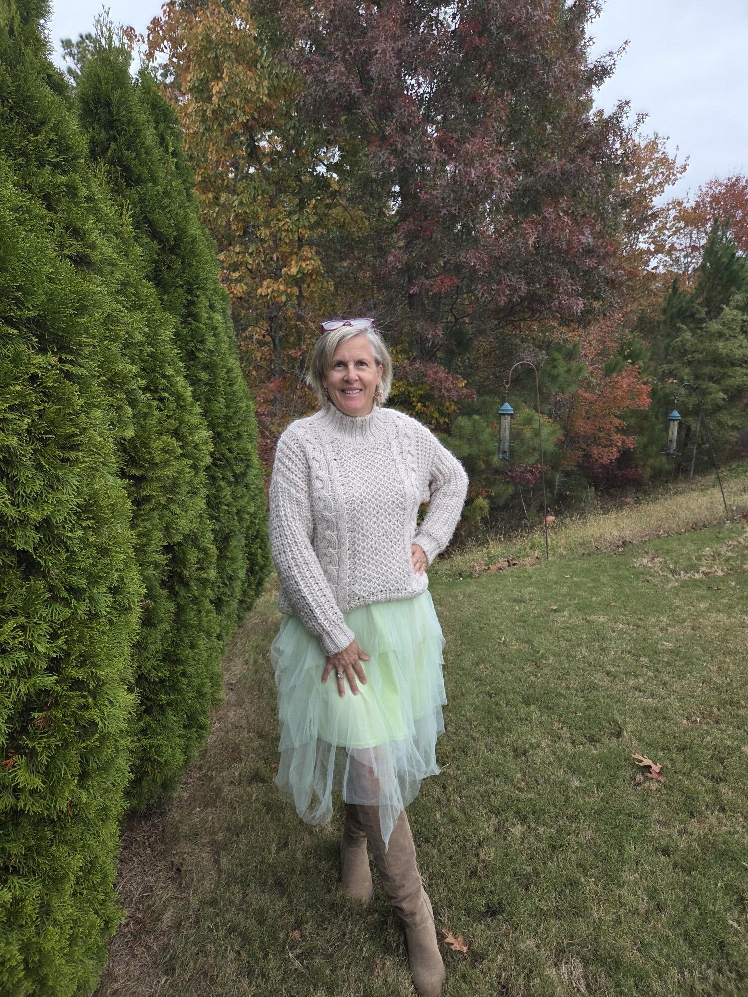 Yes, it’s time to style some tulle for winter! Some of my favorite pieces in my closet this year have been my tulle skirts and this tulle dress which I wore for my 50th birthday which I also styled for fall (here and here). After wearing it then, I knew I wanted to show you some ways a dress like this (or a skirt), could be worn in winter. Of course, if it was really cold, I would add a nice warm scarf and maybe a hat to these outfits. I hope you enjoy these and find some inspiration to have fun getting dressed this winter season!