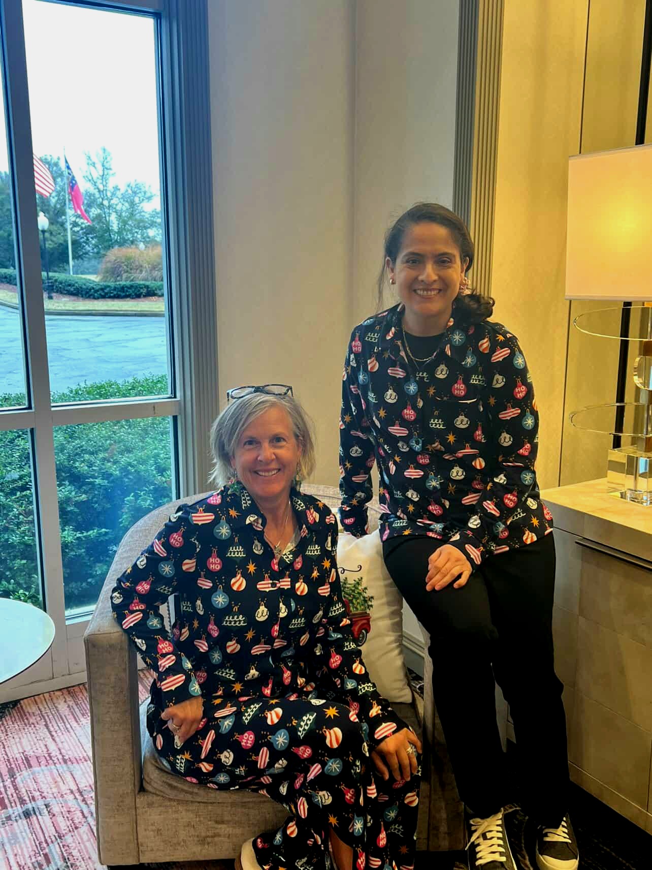 I have shared Yenni’s online boutique Valerie’s Avenue in the past as Yenni and I met a few years ago and have collaborated together several times over the years, as well as met in person several times too. I’ve also purchased a beautiful embroidered backpack purse and some embroidered booties from her boutique a couple years ago and have shared them on the blog several times. Since Christmas was approaching, Yenni suggested I feature one of the Christmas pajamas you can order in her boutique. So we met up at the Hilton Conference center in Marietta to take some pictures.