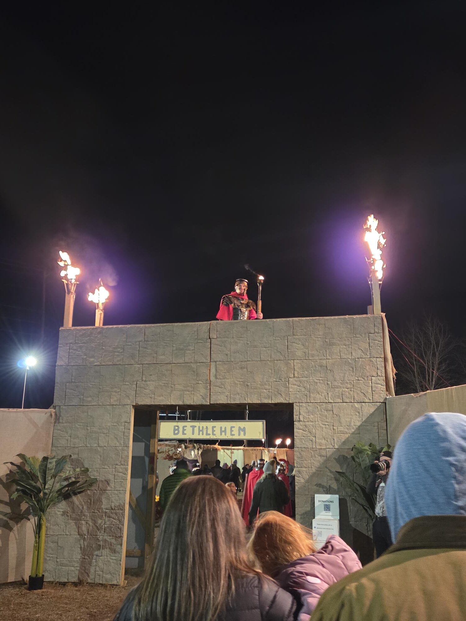 One of the things on my bucket list for December was to take the boys to a Bethlehem Walk in Marietta. I had taken my two oldest years ago (maybe 10+ years) and had really enjoyed it. So we made time on our schedule and after trying to go the first night (it was too long of a line and wait), we went on the closing night which was a Monday. The drive is about 35 minutes from our house and the Bethlehem Walk takes place outdoor on the grounds of a Methodist church.
