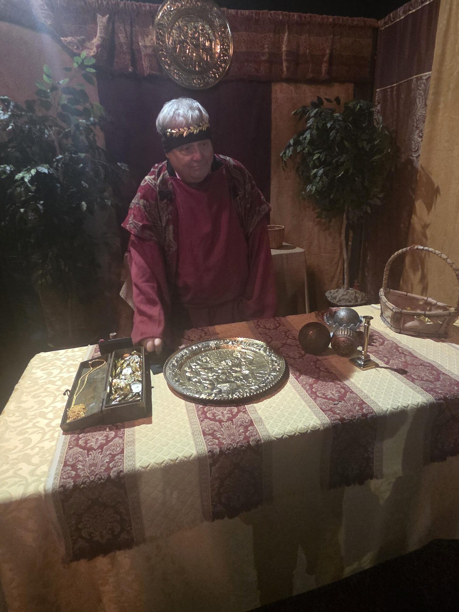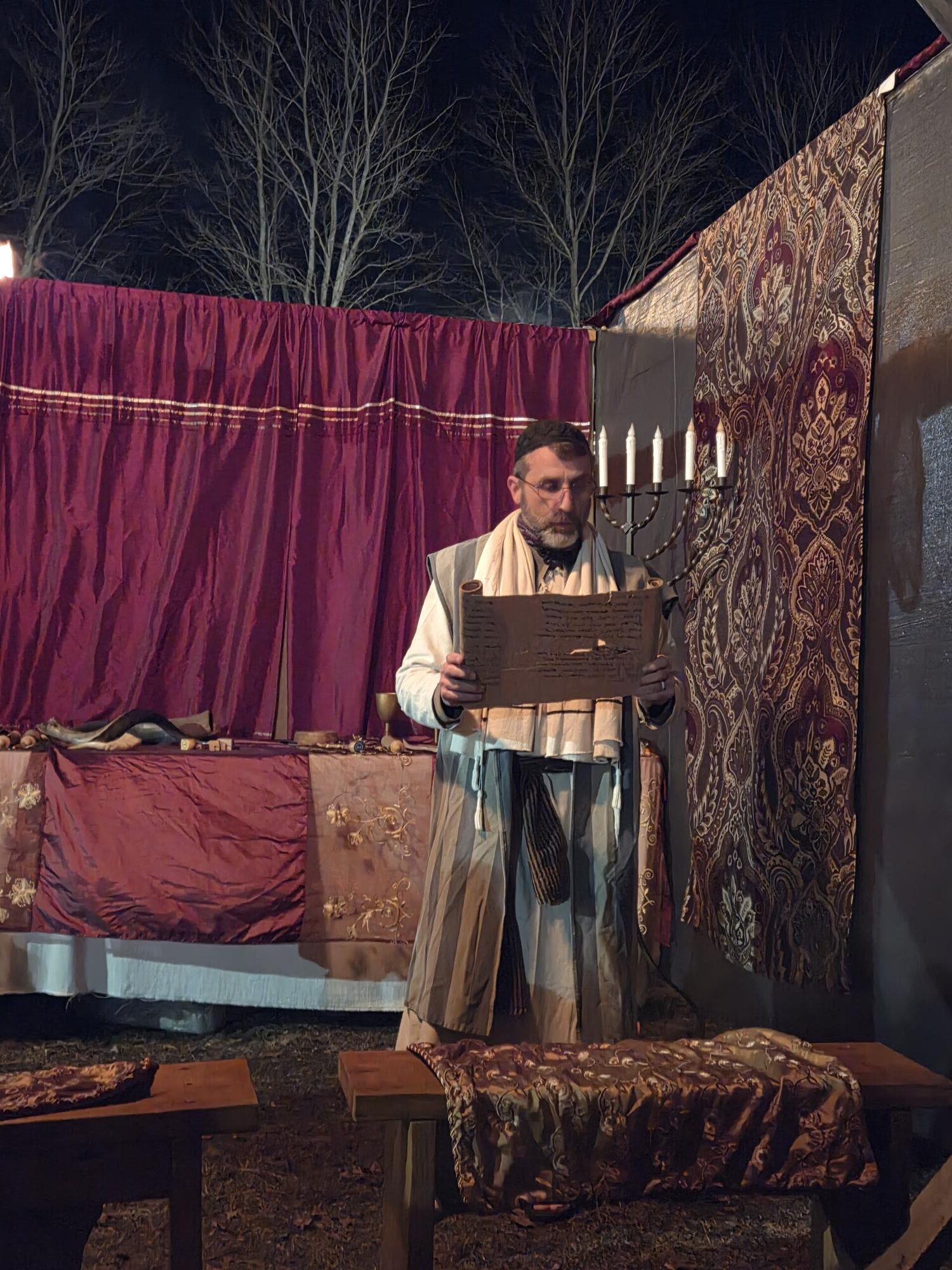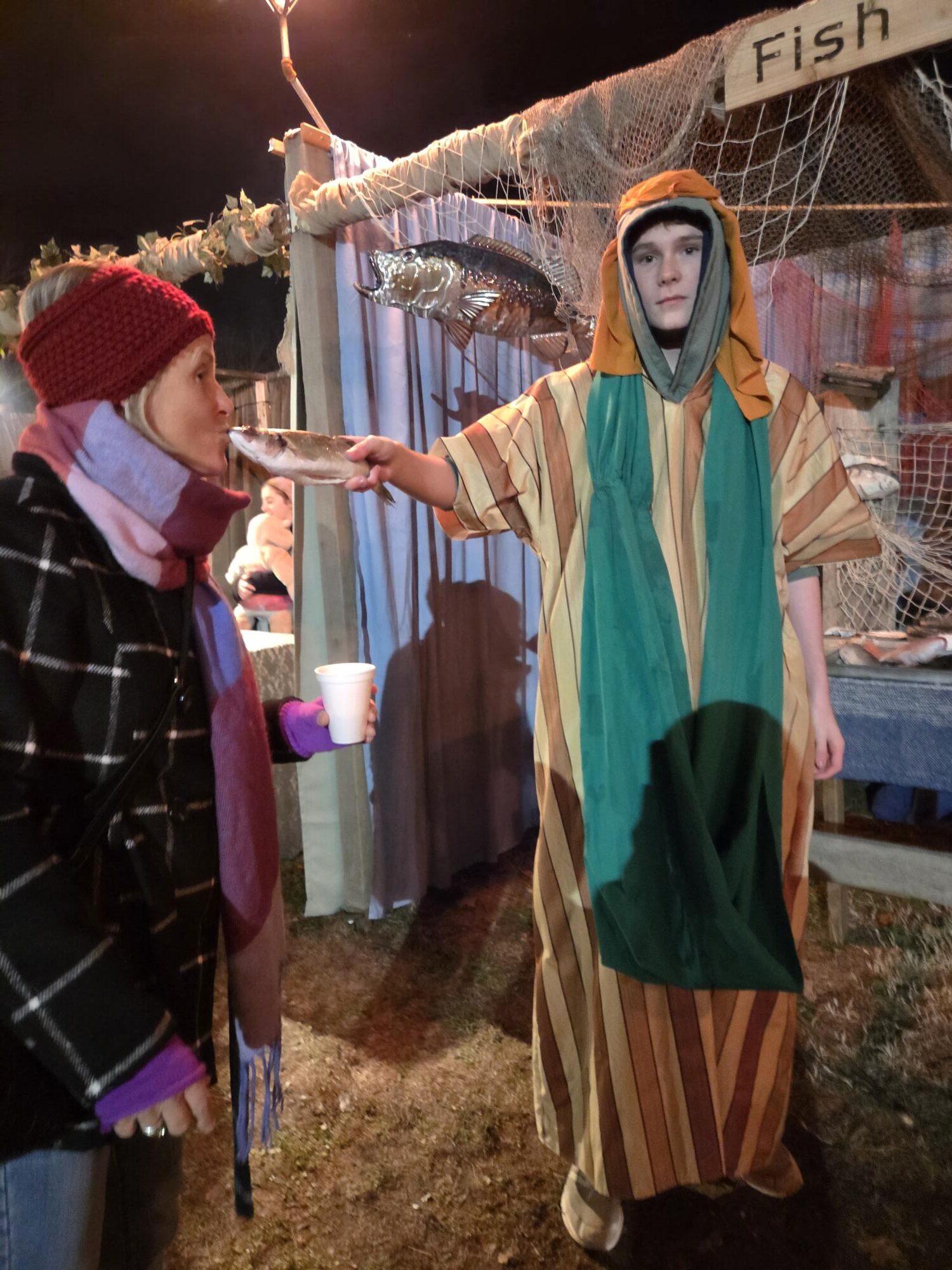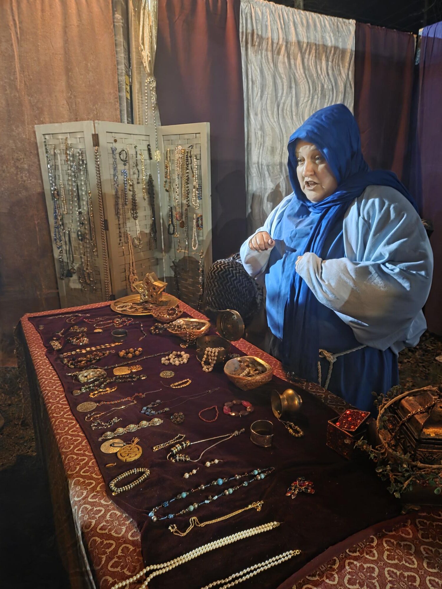 Everyone is dressed in the time period of Christ, and you walk through the “city” stopping by booths to learn about what people are at that time, what they shopped for, etc. Above is a rabbi teaching about the prophecies about Christ’s birth.