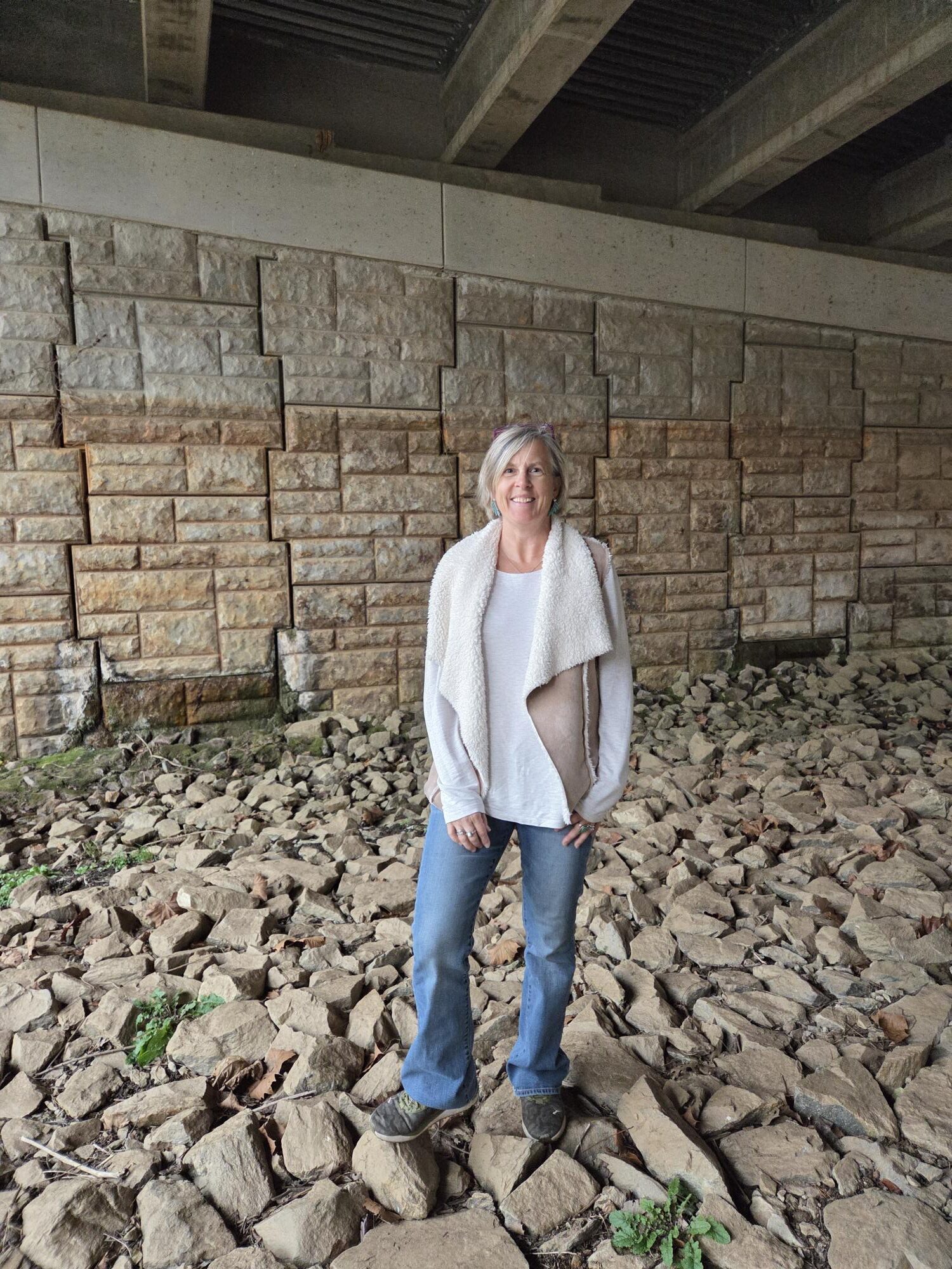 You have so many beautiful clothes but I absolutely LOVE this look on you. And I think I would like it on me!! That vest is so cute. So southwestern. I love southwestern clothing. The earrings do add a pop of color and bring attention to your pretty face. And this backdrop was dreamy for your photo shoot. Love the colors, textures, shapes of the wood and rocks. A+ outfit, photos and post.