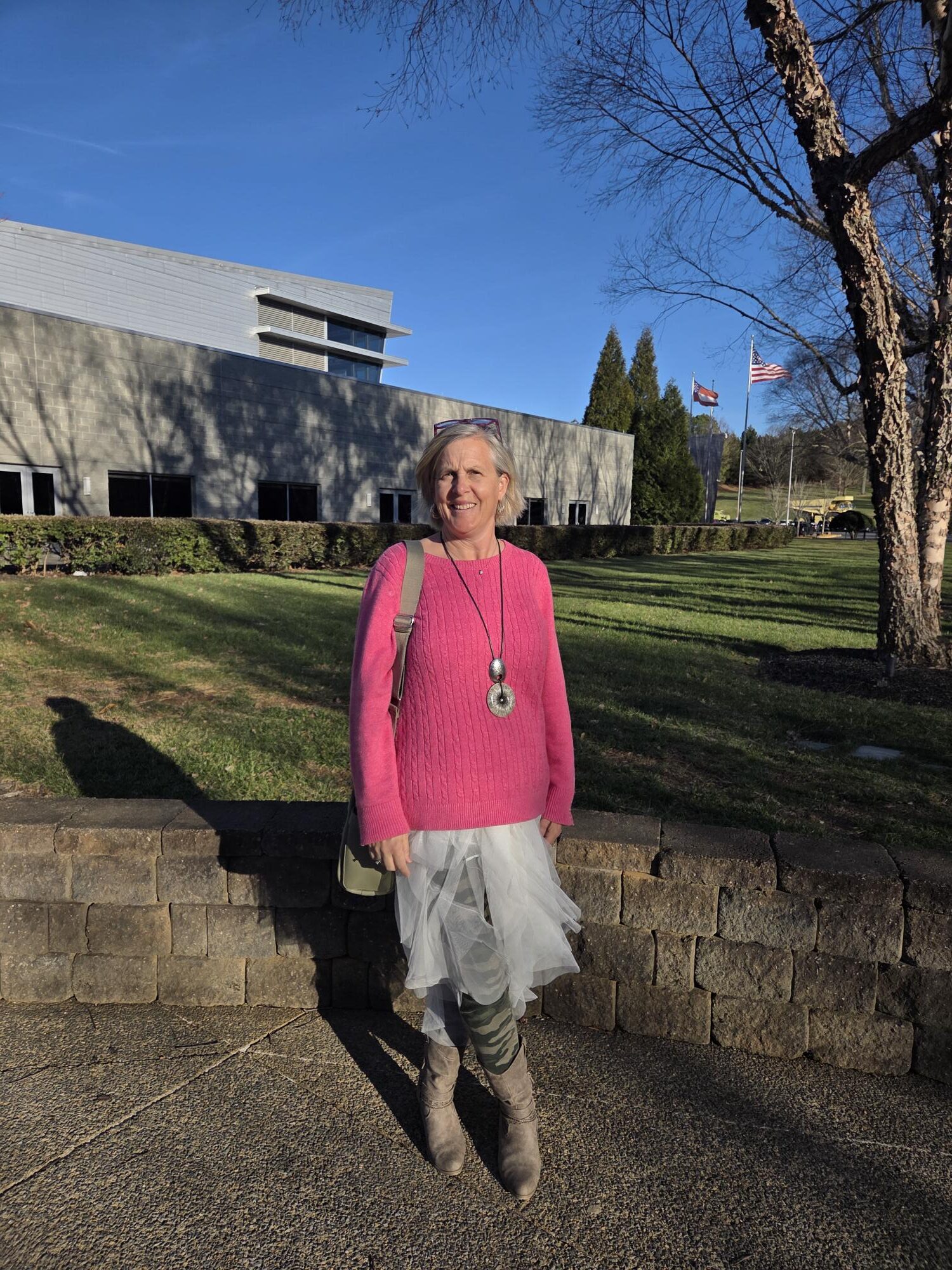 This oversized pink Talbot sweater caught my eye because it felt soft and I knew it would work with a lot in my closet. Each of the sweaters ranged for 3 to 5 dollars. I wore the second look a couple Saturdays ago: lunch with my parents, a visit to a museum and church. I wore the overlay dress over camo pants: funny story: at first I had the tulle overlay unpinned, so my mom thought I wasn’t wearing any pants. So I got a little creative and gathered the front with a rubber band and tucked it into a belt under the sweater. It allowed the camo pants to peek through so people would know I wasn’t wearing a see through dress with nothing under. I really like how the outfit turned out!