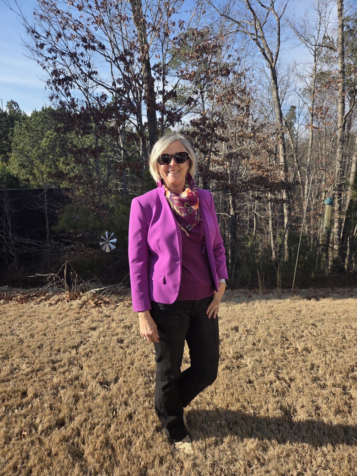 I will try that one again with a different bottom: I am donated that jumpsuit, but I do like the color pairing.