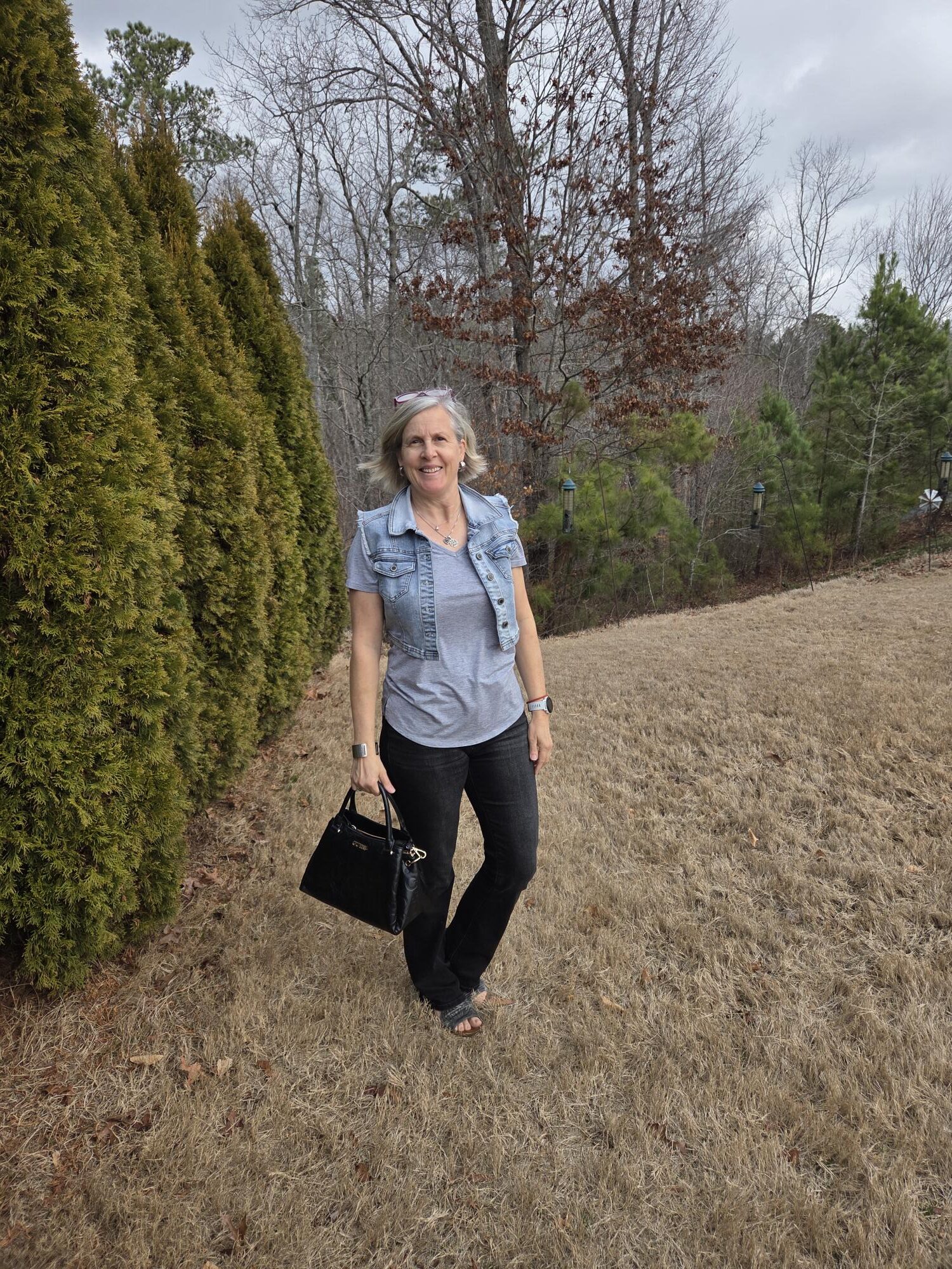 Denim Vest, Grey Tee and Black Denim