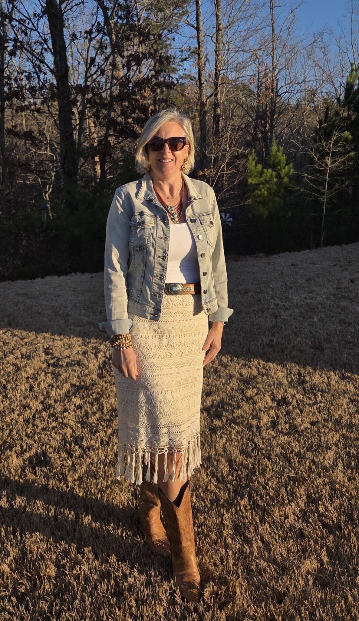 This was an outfit I pinned last year and have been wanting to wear! I absolutely love it and it was so fun to have pieces that are similar in my closet! I love the boho/western vibes! I did switch my boots for some other ones for church as it was the Sunday before lent and I knew I need some comfortable wear for our Forgiveness Vespers service . My Chico thrifted skirt is really fun with the fringe and I pulled out wooden and turquoise pieces for my accessories.