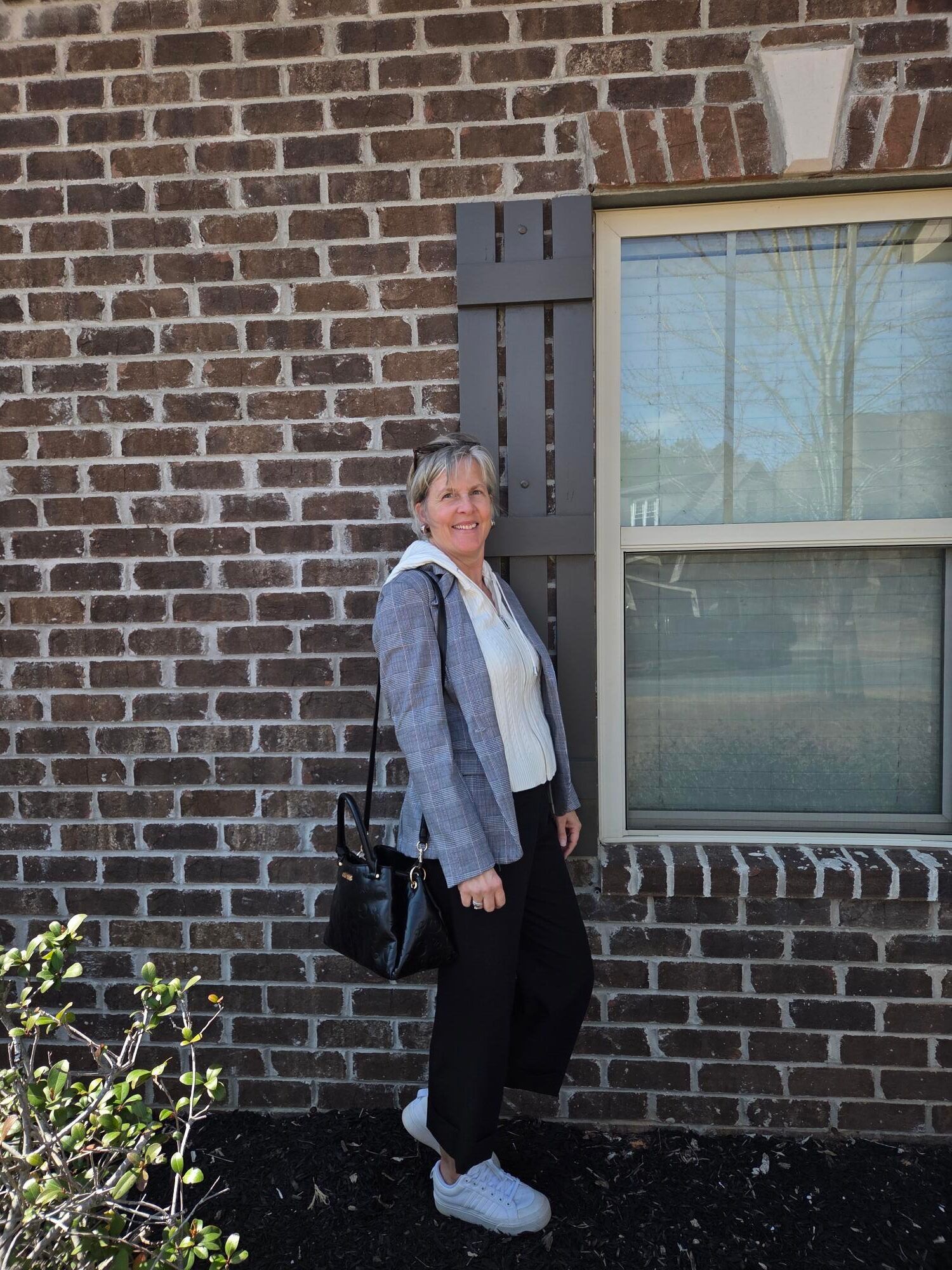 I found inspiration for this outfit on Pinterest which was a great way for me to wear this hand me down pair of pants which I don’t wear very often. I really enjoy wearing my sneakers in the spring as long as it is not raining since most of my sneakers are canvas. Everyone should have a pair of white sneakers in my opinion: they go with everything!
